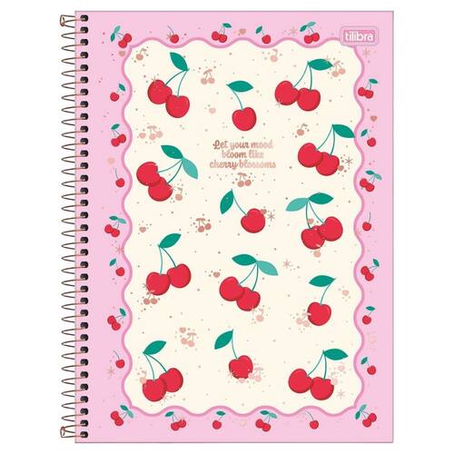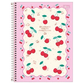 O Caderno Espiral Capa Dura Universitário 1 Matéria Amarena 80 Folhas da Tilibra é perfeito para você que busca uma opção para organização da rotina de estudos com visual de cerejas.