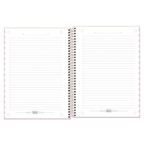 Use este modelo, com capa dura com detalhes metalizados e a parte interna decorada, bolsa de papel para guardar trabalhos, adesivos funcionais, folhas pautadas e decoradas e espiral colorido, para anotar as aulas, fazer resumos, listar tarefas e organizar as ideias de forma prática e eficiente.