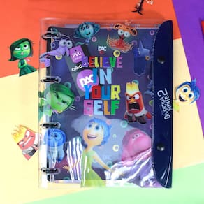 O Fichário Universitário Divertidamente 2 em PCV Cristal com Botão é um sucesso em vendas pela sua inovação, estilo e praticidade. É uma boa alternativa para quem quer o tamanho de um caderno, mas gostaria da versatilidade ao inserir ou retirar folhas, pois as argolas articuladas abrem, possibilitando esta ação. Contém ferragem fixa com 4 argolas e 192 folhas com gramatura de 56g.