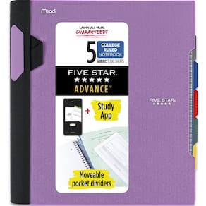 Five Star Caderno espiral + aplicativo de estudo, 5 assuntos, papel pautado universitário, caderno avançado com proteção espiral, divisórias móveis com abas e bolsos expansíveis, 21 x 28 cm, 200 - Dura o ano todo. GARANTIDO! - Digitalize, estude e organize suas anotações com o aplicativo Five Star App. Crie flashcards instantâneos e sincronize suas anotações com o Google Drive para acessá-las em qualquer lugar a partir de qualquer dispositivo. - Reorganize as divisórias de plástico móveis em qualquer lugar do seu caderno para organizar anotações. As divisórias com bolsos expansíveis suportam apostilas de 21 cm x 28 cm. As abas visíveis da capa frontal facilitam virar para qualquer seção. - O caderno de 5 matérias tem 200 folhas de papel de alta qualidade pautadas para faculdade dupla face que são perfuradas para facilitar a remoção. As folhas medem 21 cm x 28 cm quando rasgadas. - O protetor espiral cobre o fio para ajudar a evitar arranhões em roupas e mochilas. Etiquete seu caderno na lombada gravável e mantenha sua caneta ou lápis favorito à mão no laço da caneta. Disponível em ametista roxa.