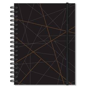Caderno Folhas Removíveis Geométrico Fina Ideia: - Caderno capa dura com estampa exclusiva e frase em hot stamp dourado; - Formato 16,5x23,2cm; - Miolo pautado com 80 folhas removíveis em papel offset 90g/m; - 6 divisórias removíveis coloridas e estampadas em papel Kraft 200g/m; - Encadernação wire-o e elástico para fechamento; - Acompanha envelope para documentos resistente e folha de adesivos.