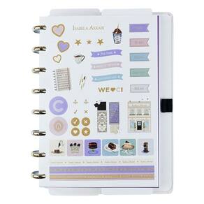 Para quem é apaixonado nas receitas da Isabela Akkari e organizar as anotações com praticidade e estilo, o Caderno Inteligente A5 Isa Akkari Purple Key CIA52367 é perfeito! Com design super sofisticado, possui folha de adesivos, divisórias para identificação, capa e contracapa rígida, bolsa plástica e discos M na cor dourado que permite inserir, remover e reorganizar as folhas com facilidade, não perca mais tempo para deixar sua rotina de estudos, trabalho ou planejamento um luxo!