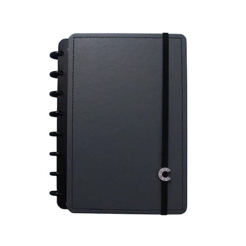 Caderno Inteligente A5 Pequeno Basic Grey - 80 Folhas Caderno Inteligente A5 Pequeno Basic Grey - 80 FolhasA5 Pequeno: Capa e contracapa rígidas, 01 bolsa plástica, 01 folha de instrução de uso e manuseio, com refis e acessórios da marca disponíveis no verso, 01 folha de identificação com calendário no verso, 04 divisórias com abas para identificação (02 pretas e 02 transparentes), 80 folhas offset 90g (60 folhas pautadas e 20 folhas lisas brancas para impressão), 01 suporte com elástico para 01 caneta ou 01 lápis e discos M + elástico. tamanho: 22cm X 15,5cm Obs.: Por se tratar de um produto artesanal, a tonalidade pode variar um pouco. :)O caderno que você tira e coloca folhas quando quiser ;)Caderno inteligente, só Caderno Inteligente.Imagem Meramente Ilustrativa, acessorios da foto nao incluso.