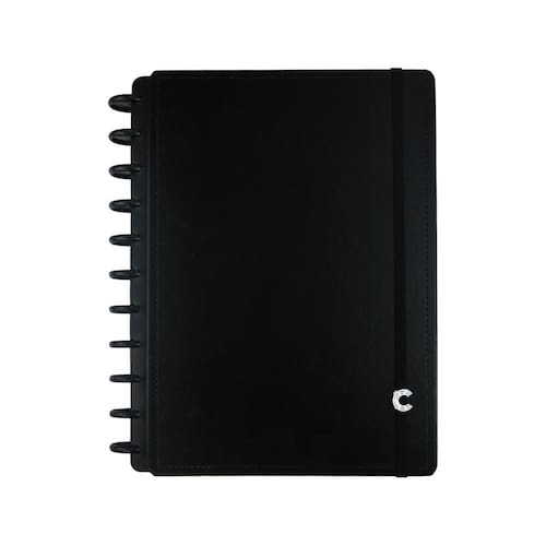 O que vem no produto: capa e contracapa rígidas na cor Black com sistema de 11 discos G; 140 folhas offset 90g/m² (120 pautadas e 20 lisas); 10 divisórias com abas e página de índice; 1 folha de adesivos e 1 bolsa plástica; folha de identificação com calendário no verso; folha de instruções e dicas de acessórios; suporte elástico para 1 caneta ou lápis.