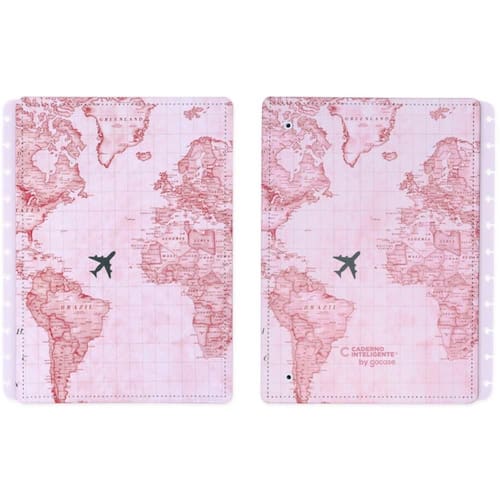 Capa e Contracapa Caderno Inteligente By Gocase Mapa Mundi Rosa - Grande.