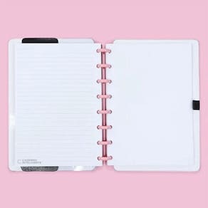 Caderno Inteligente Fairytale A5 80 Folhas:- Caderno que você tira e coloca folhas quando quiser;- Capa e contracapa rígidas com a cor mais amada, rosa;- 01 bolsa plástica;- 01 folha de instrução de uso e manuseio;- 01 folha de identificação com calendário no verso;- 04 divisórias com abas para identificação 02 pretas e 02 transparentes ;- 80 folhas offset 90g 60 folhas pautadas e 20 folhas lisas brancas para impressão ;- 01 suporte com elástico para 01 caneta ou 01 lápis;- 08 Discos M + elástico rosa. ESPECIFICAÇÕESMarca: Caderno InteligenteEncadernação: DiscosFormato: 160 x 220 mmNúmero de Folhas: 80