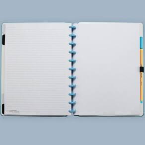 Caderno Inteligente Grande All Blue Azul 80 Folhas Caderno Inteligente Grande All Blue Azul 80 FolhasGrande: Capa e contracapa rígidas, 01 bolsa plástica, 01 folha de instrução de uso e manuseio, com refis e acessórios da marca disponíveis no verso, 01 folha de identificação com calendário no verso, 04 divisórias com abas para identificação (02 pretas e 02 transparentes), 80 folhas offset 90g (60 folhas pautadas e 20 folhas lisas brancas para impressão), 01 suporte com elástico para 01 caneta ou 01 lápis e discos M + elástico. tamanho: 28cm X 21,5cm Obs.: Por se tratar de um produto artesanal, a tonalidade pode variar um pouco. :)O caderno que você tira e coloca folhas quando quiser ;)Caderno inteligente, só Caderno Inteligente.Imagem Meramente Ilustrativa, acessorios da foto nao incluso.