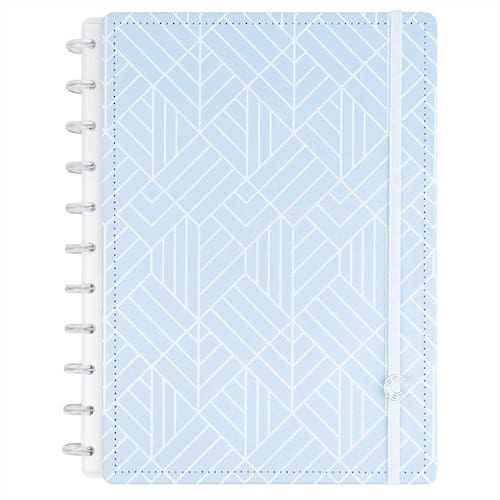 Um design único e sofisticado em azul sólido e detalhes em high print. A experiência fica completa com as folhas azuis linhas brancas. Um diferencial para estudantes e apaixonados por papelaria.
