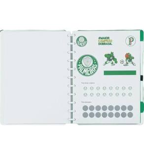 Com capa exclusiva nas cores características do time e discos e elástico Branco e verde, ele é o caderno do Palmeiras que você sempre sonhou em ter, versátil e muito prático para qualquer necessidade. E tem mais: essa edição especial também vem com selo oficial, folha de adesivos, folhas exclusivas com hino, biografia e escalação, divisórias e folhas pautadas PALMEIRAS personalizadas oficiais do clube