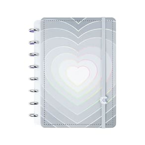 Apaixone-se e inspire-se com este caderno incrivelmente personalizável cinza com um brilho super sofisticado em formato de coração com hotstamping holográfico.