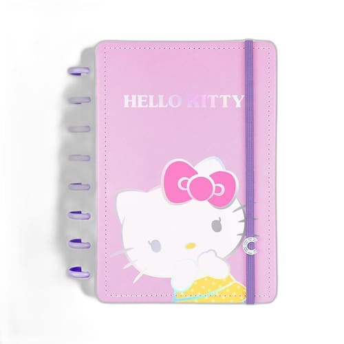 Cada página é decorada com detalhes temáticos da Hello Kitty, como a personagem e linhas rosa, tornando suas anotações mais alegres e inspiradoras.