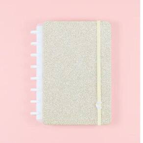 Caderno inteligente lets glitter gold - pequeno - a5 Caderno inteligente lets glitter gold - pequeno - a5 Aos apaixonados por glitter, o ci let's glitter silver é a forma perfeita de se expressar com muito brilho sem deixar a elegância e sobriedade de lado. Use e abuse, brilhe Criado especialmente para ajudar na sua produtividade e melhorar ainda mais a sua organização e estudos, o caderno inteligente é um caderno renovável super prático de usar. Mesmo se você preencher todas as folhas, você pode adquirir refis de diferentes tipos, além de outros acessórios, e personalizar o seu caderno de discos do seu jeito. : Características:- capa e contracapa rígidas,- 01 folha de adesivos,- 01 bolsa plástica,- 01 folha de instrução de uso e manuseio, com informações de refis e acessórios da marca disponíveis no verso,- 01 folha de identificação com calendário no verso,- 04 divisórias com abas para identificação 02 pretas e 02 transparentes ,- 80 folhas offset 90g 60 folhas pautadas e 20 folhas lisas brancas para impressão - 01 suporte com elástico para 01 caneta ou 01 lápis,- discos m + elástico. Tamanho a5:O caderno tamanho a5 é exatamente o que o nome promete: metade de uma folha sulfite a4 . Ele traz mais espaço para você escrever, desenhar, rabiscar, mas sem ocupar um espação na mochila. Informações técnicas:Marca: caderno inteligenteModelo: lets glitterCor: gold dourado Tamanho: a5Medidas aproximadas: 22cm de altura x 15,5cm de larguraCód.: cia52128 Obs.:- por se tratar de um produto artesanal, a tonalidade pode variar um pouco.- pequenas partículas de glitter podem se soltar.