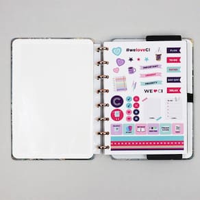 O Caderno Inteligente® Ônyx acompanha uma cartela de adesivos que são uma gracinha, para deixar o seu queridinho ainda mais fofo e divertido, com desenhos, marca páginas, lembretes e até um mini checklist.