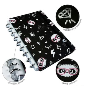 Personalização Ilimitada: Deixe o caderno com a sua cara! Com uma ampla linha de acessórios e refis, você pode mudar a capa, adicionar divisórias, incluir folhas pautadas, lisas, quadriculadas, pontilhadas, e até escolher discos de diferentes cores e tamanhos. A personalização vai além da estética, tornando seu caderno uma ferramenta única e funcional.
