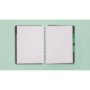 O caderno inteligente é produzido com materiais de alta qualidade que permitem remover e inserir as folhas com muita facilidade e segurança.