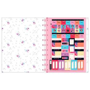 Folhas: pautadas decoradas. Formato: 200mm x 275mm. Gramatura: 90 g/m Índice/separador de matérias decorados: sim. Número de folhas: 160 folhas.