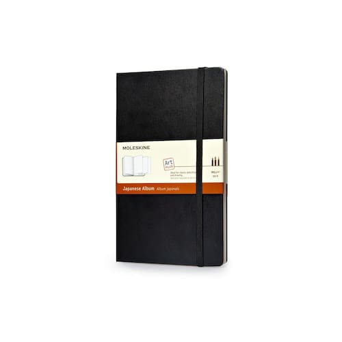 Moleskine Álbum de arte japonesa, capa dura, grande (12,7 cm x 21 cm) liso/branco, preto, 48 páginas - MOLESKINE Coleção de arte: de cadernos de desenho e blocos de esboço a cadernos de aquarela com papel pesado, cadernos de música com páginas simples e pentagramas a cadernos de layout de storyboard, a coleção de arte de cadernos da Moleskine oferece a qualidade que você precisa. - Capa durável e fecho elástico: mantenha projetos de escrita e notas em seu caderno Moleskine com uma faixa de fechamento elástico e pastas de armazenamento internas. Capa Moleskine clássica semelhante a couro e páginas grossas de papel marfim são perfeitas para escrever com canetas-tinteiro. - Cadernos de qualidade para presente: agendas, diários e cadernos Moleskine vêm em capa dura ou capa mole e cores como preto, vermelho, azul, verde e marrom. A encadernação e a capa têm um acabamento durável, projetado para diário, escrita e esboço. - Páginas de qualidade de luxo: as páginas grossas de papel marfim da Moleskine em um caderno Moleskine de capa dura, caderno Moleskine de capa mole, diário cahier ou volant ou agenda Moleskine são perfeitamente texturizadas para escrever com uma caneta esferográfica, caneta-tinteiro ou lápis. - MOLESKINE Qualidade: somos dedicados à cultura, viagens, memória, imaginação e identidade pessoal — tanto física quanto digital. Trazemos esse compromisso para nossos notebooks, bolsas, aplicativos e canetas inteligentes e notebooks.