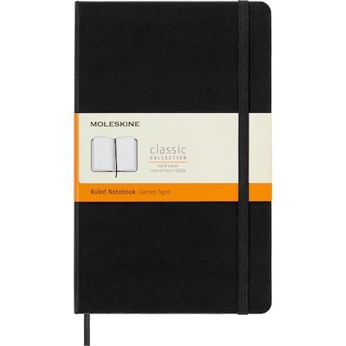 Moleskine Caderno clássico, grande, pautado, preto, capa dura (12 x 21 cm) - Caderno clássico Moleskine: os cadernos clássicos da Moleskine são cadernos perfeitos para escrever diários, um diário ou tomar notas em aulas ou reuniões da faculdade. Os cadernos Moleskine são amados por viajantes e jornalistas por seu design fino. - Capa durável e fecho elástico: mantenha projetos de escrita e notas em seu caderno Moleskine com uma faixa de fecho elástico e pastas de armazenamento internas. Capa Moleskine clássica semelhante a couro e páginas grossas de papel marfim são perfeitas para escrever com canetas-tinteiro. - Cadernos de qualidade para presente: agendas, diários e cadernos Moleskine vêm em capa dura ou capa mole e cores como preto, vermelho, azul, verde e marrom. A encadernação e a capa têm um acabamento durável, projetadas para diário, escrita e esboço. - Páginas de qualidade de luxo: as páginas grossas de papel marfim da Moleskine em um caderno Moleskine de capa dura, caderno Moleskine de capa mole, diário cahier ou volant ou agenda Moleskine são perfeitamente texturizadas para escrever com uma caneta esferográfica, caneta-tinteiro ou lápis. - MOLESKINE Qualidade: somos dedicados à cultura, viagens, memória, imaginação e identidade pessoal — tanto física quanto digital. Trazemos esse compromisso para nossos cadernos, bolsas, aplicativos, canetas inteligentes e notebooks.