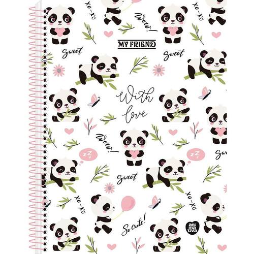 Caderno My Friend Panda Universitário Escolar 1 Matéria - Animativa
