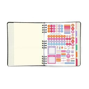 Este modelo possui: -bolsa pasta -cartela de adesivos funcionais exclusiva do produto -6 divisórias com abas customizáveis -miolo duo offset 90g: 40 folhas pautadas + 40 folhas pontado - perfeito para exercitar os dois lados do cérebro, este miolo vem com folhas em offset em uma maior gramatura para melhor funcionalidade do sistema removível.