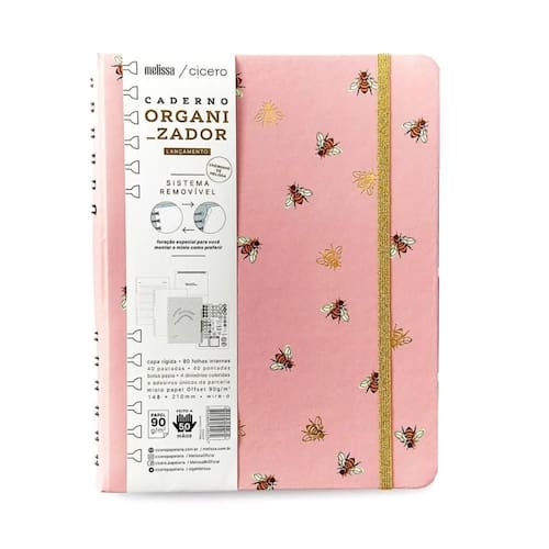 Caderno organizador duo pautado & pontado melissa colméia a5 Caderno organizador duo pautado & pontado melissa colméia a5