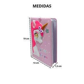Características Principais: - Design Encantador: A capa macia é adornada com um desenho de unicórnio que conta com relevo delicado e glitter brilhante nos olhos, tornando-o uma obra de arte visual. - Material de Qualidade: Construído com uma capa de PU suave ao toque, oferece durabilidade e uma sensação confortável para escrita diária ou desenho. - Glitter e Glamour: O uso gracioso de glitter não só embeleza a capa, mas também captura a luz e a atenção, transformando este caderno em um acessório de destaque. - Multiuso: Ideal como diário pessoal para registrar memórias ou como um bloco de notas para manter listas e lembretes sempre à mão.