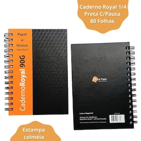 Caderno Royal 1/4 Preta C/Pauta 80 Folhas 140X205 Mm