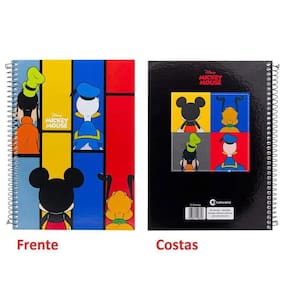 A capa dura proporciona proteção eficaz ao conteúdo interno do caderno, garantindo sua durabilidade mesmo em condições de uso intensivo. A presença dos adoráveis personagens como Donald, Pateta, Mickey e Pluto na capa adiciona um toque de diversão e nostalgia, tornando-o visualmente cativante para fãs de todas as idades.