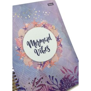 O Caderno Espiral Universitário Sereia possui capa dura com a parte interna decorada, bolsa de papel decorada para guardar trabalhos e anotações, folha com adesivos funcionais, folhas pautadas e espiral dourado. Ideal para o dia a dia na escola ou na faculdade.