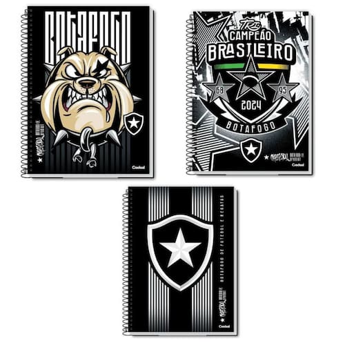 Caderno Universitário 10 Matérias 160 Folhas - Botafogo Mostre sua paixão pelo Botafogo de Futebol e Regatas também nos estudos com este caderno universitário de 10 matérias e 160 folhas. Ideal para estudantes que buscam qualidade, organização e um toque de identidade alvinegra em seu material escolar. A capa dura personalizada com o escudo e as cores oficiais do Botafogo oferece resistência e durabilidade, protegendo suas anotações do uso diário. O espiral metálico garante maior conforto e praticidade ao virar as páginas, enquanto as folhas pautadas proporcionam espaço suficiente para anotações, resumos e atividades de diferentes disciplinas. Características: Formato: Universitário aprox. 27,5 cm x 20 cm 10 matérias 160 folhas pautadas de alta qualidade Capa dura com design oficial do Botafogo Espiral metálico resistente Miolo com margens e espaço para título e data Ideal para uso escolar, universitário ou Perfeito para estudantes e torcedores que desejam levar o orgulho alvinegro para a sala de aula com estilo e funcionalidade.