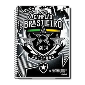Caderno Universitário 10 Matérias 160 Folhas - Botafogo Mostre sua paixão pelo Botafogo de Futebol e Regatas também nos estudos com este caderno universitário de 10 matérias e 160 folhas. Ideal para estudantes que buscam qualidade, organização e um toque de identidade alvinegra em seu material escolar. A capa dura personalizada com o escudo e as cores oficiais do Botafogo oferece resistência e durabilidade, protegendo suas anotações do uso diário. O espiral metálico garante maior conforto e praticidade ao virar as páginas, enquanto as folhas pautadas proporcionam espaço suficiente para anotações, resumos e atividades de diferentes disciplinas. Características: Formato: Universitário aprox. 27,5 cm x 20 cm 10 matérias 160 folhas pautadas de alta qualidade Capa dura com design oficial do Botafogo Espiral metálico resistente Miolo com margens e espaço para título e data Ideal para uso escolar, universitário ou Perfeito para estudantes e torcedores que desejam levar o orgulho alvinegro para a sala de aula com estilo e funcionalidade. Marca: Não Informado