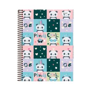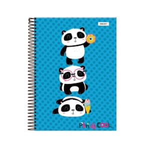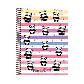 Caderno Universitpario Panda Cool capa dura em Espiral preto. 20 matériascom 320 folhas, dimensão 20x275; Capa em Verniz UV brilho total. Não acopanha bolsa na contracapa, Não acompanha adesivos.