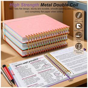 Este caderno universitário espiral GDGDSY em formato B5 8 x 10 oferece 5 seções organizadas em um único volume com 300 páginas pautadas, adequado para anotações extensas em estudos, trabalho e planejamento pessoal. A capa dura em couro sintético com cantos metálicos dourados reforçados protege o miolo contra desgaste diário e impactos leves na mochila ou pasta.