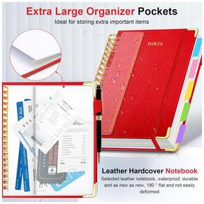 Marca: GDGDSY Fabricante: GDGDSY Modelo: 001 — college ruled Tipo de produto: Caderno universitário espiral com divisórias Formato das folhas: B5 Dimensões do caderno: 20,3 cm x 25,4 cm x 2,5 cm (largura x altura x lombada) Peso do produto: 0,97 kg Peso do pacote (produto + embalagem): 0,97 kg Cor da capa: vermelho Material da capa: Couro sintético (PU) com cantos metálicos dourados Tipo de encadernação: Espiral metálica dupla Abertura da encadernação: 180° Número de matérias/seções: 5 assuntos Número de páginas: 300 páginas pautadas Tipo de pauta: Linhas estilo universitário Divisórias internas: 5 divisórias móveis Etiquetas incluídas: 8 etiquetas autoadesivas para identificação das seções Bolso interno: 1 bolso traseiro interno para documentos Fechamento: Elástico horizontal Laço para caneta: Sim, suporte lateral para caneta Uso indicado: Anotações escolares, acadêmicas, profissionais, planejamento e journaling Marca: Não Informado