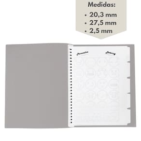 OBS.: Com prático sistema abre a fecha para trocar de refil de folhas.
