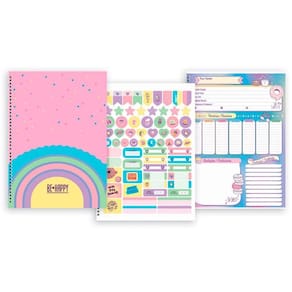 contém: 01 un - caderno - be happy. Caderno de capa dura e estampas que todas as meninas irão amar essa é uma coleção ideal para o público de crianças, jovem e adulto e que vive sua vida nos ensinamentos mais valiosos. O caderno conta com 160 folhas e com a gramatura 56gr. O caderno possui lindo formado para o estudo, os jovens irão vão amar esse caderno garanta já o seu