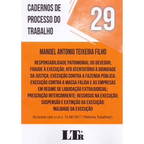 Os Cadernos de Processo do Trabalho compõem uma excelente coleção elaborada pelo Prof. Manoel Antonio Teixeira Filho, um dos mais destacados juristas do País.
