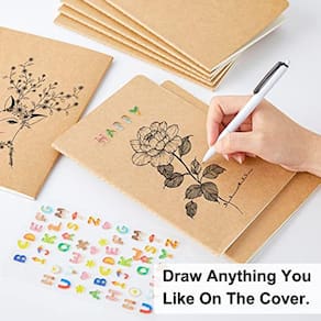 Pacote com 15 cadernos Kraft em branco, caderno de desenho sem forro Feela, caderno de notas, diário de viagem para desenhar, rabiscar e escrever, diário a granel para mulheres, crianças e estudantes, material escolar de escritório, A5, 60 páginas, 8,3” x 5,5”