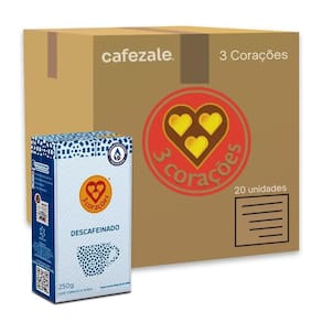 Café 3 Corações Descafeinado a Vácuo Kit 20 Pacotes de 250g Desfrute do sabor de um descafeinado com tradição