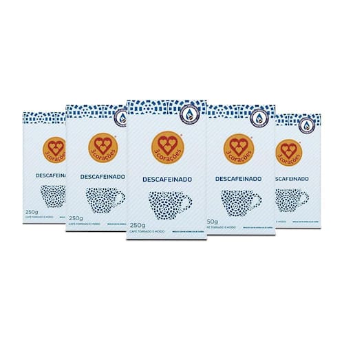 Café 3 Corações Descafeinado a Vácuo Kit 5 Pacotes 250g Sabor e tradição, agora sem cafeína