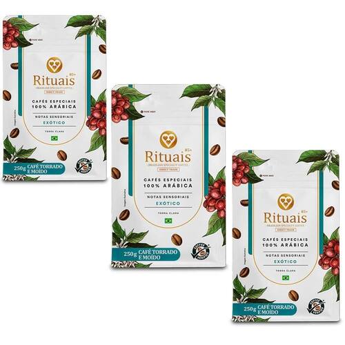 Café 3 Corações Rituais Exótico 250g O Café 3 Corações Rituais Exótico 250g é uma verdadeira experiência sensorial para quem aprecia cafés especiais. Produzido com grãos 100% arábica, esse blend exclusivo se destaca por suas notas exóticas e envolventes, oferecendo uma bebida equilibrada e refinada. Um café diferenciado para os momentos mais especiais do dia.