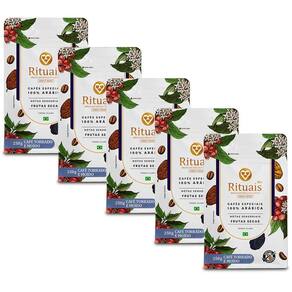 5 pacotes de café moído torrado. Peso líquido total: 1250g.