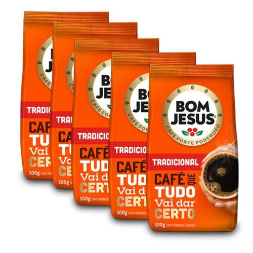 Café Bom Jesus Tradicional Moído Kit 5 Pacotes De 500G Cada
