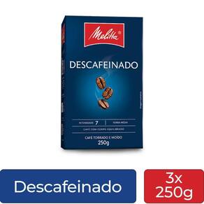 Café Melitta Descafeinado Torrado e Moído Kit 3 Pacotes de 250g Sabor sem cafeína, com a qualidade de sempre.