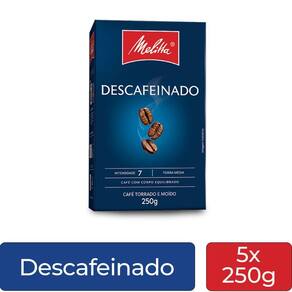 Café Melitta Descafeinado Torrado e Moído Kit 5 Pacotes de 250g Sabor sem cafeína, com a qualidade de sempre.