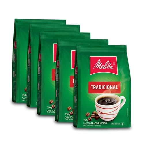 Café Moído Melitta Tradicional Kit 5 Pacotes De 250G