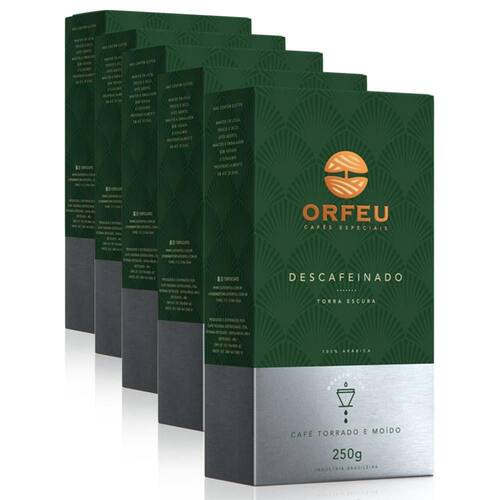 Café moído premium orfeu descafeinado kit 5 pacotes de 250g Todo o sabor de um café especial, com a praticidade do moído