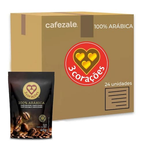 Café Solúvel 100% Arábica Três Corações Kit 24 Refis de 40g O Café Solúvel 100% Arábica Três Corações 40g é perfeito para quem aprecia um café de alta qualidade com praticidade. Feito exclusivamente com grãos arábica selecionados, oferece um sabor suave e aroma marcante, proporcionando uma experiência única a cada xícara.