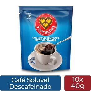 Café Solúvel Descafeinado Três Corações Kit 10 Refis de 40g