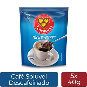 Café Solúvel Descafeinado Três Corações Kit 5 Refis de 40g